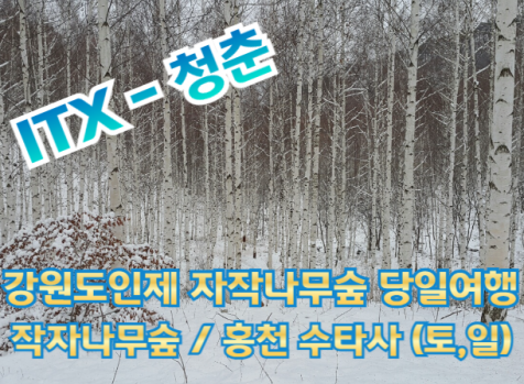 상품코드 1123 [ ITX-청춘 ] 강원도 인제 자작나무숲 / 홍천 수타사 당일 기차여행 (중식제공) - 출발일 달력에서 출발일을 선택해주세요. 상품가격 99,000원 (대인) 89,000원 (소인) 최소출발인원 20명