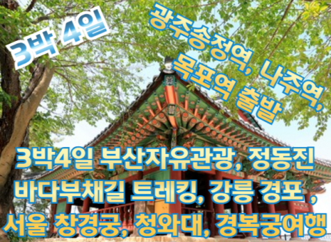 ※ 포함사항 : 출발역→부전역, 부전역→강릉역, 강릉역→서울역, 용산역→출발역 열차비, 현지차량비, 지하철비, 식사비(8식), 호텔비(3박), 입장료(바다부채길, 창경궁, 경복궁), 안내비