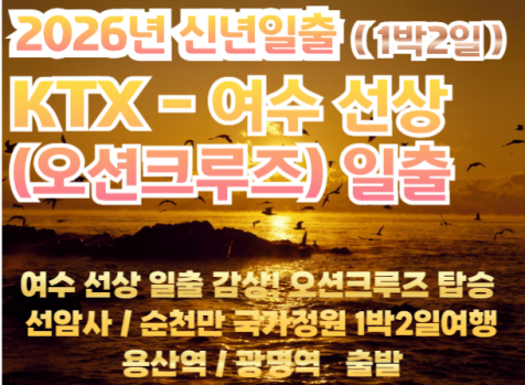 ◎2026 해돋이행사인 본 상품은 열차좌석과 연계버스료,선박,식당 등에 대한 제비용을