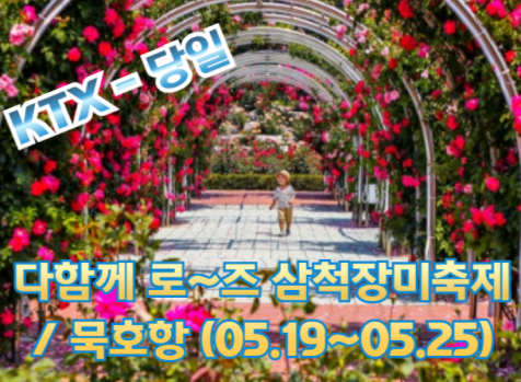 | 천만송이 장미가 연출해내는 환상적인 분위기를 즐겨보는 삼척장미축제! - 축제일시 : 5월 19일 ~ 5월 25일 (꽃의 개화시기는 날씨에 따라 달라질 수 있습니다.) - 총 218종 13만그루 1천만 송이의 장미가 단일 규모로 세계 최대 수량을 가진 공원 - 산책로와 포토존을 비롯해 장미터널과 이벤트 가든, 바닥분수, 잔디광장 및 편의시설을 갖춘 이 곳!